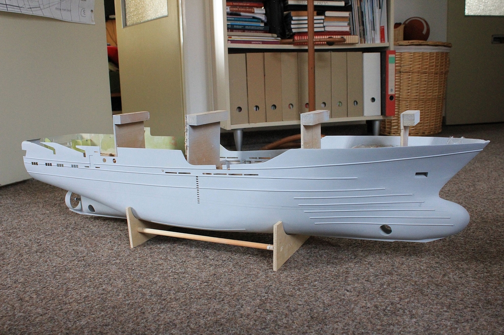 Přestože jsem měl rozpracovanou jinou loď, začal jsem postupně s trupem a kabinou. Občas jsem si nevěděl rady s některými detaily, tak jsem napsal e-mail kapitánovi a ten, ač byl i na moři, nafotil potřebné požadované detaily a zaslal. Dokonce mi zaslal i CD s téměř 500 fotkami, ale jak to možná všichni znáte, ne vždy tam bylo to, co jsem potřeboval. Když jsem si nevěděl rady s odstíny barev, poslal celý manuál s označením barev, kterými je loď natřena.