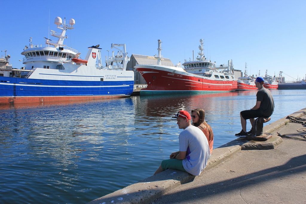 Po obědě a rozloučení s kapitánem jsme ještě zašli do největšího mořského akvária v Evropě (nordsoenoceanarium.dk), kde zrovna probíhalo krmení. Sedli jsme si do lavic jako v kině a pozorovali potápěče krmícího ryby v obřím akváriu jako na filmovém plátně. Tahákem tohoto akvária je ryba s názvem „Sunfish“. V přilehlých prostorách jsme se mohli dozvědět, že největší úlovek této ryby byl 3 m dlouhý a vážil 2235 kg. Ještě shlédneme krmení lachtanů a už míříme autem do 50 km vzdáleného Skagenu - nejseverněji položeného města v Dánsku. Město je také známo výrobou stejnojmenných hodinek. Po příchodu na nejznámější místo tohoto města - mola s typicky červenými baráčky - jsem opět u vytržení. V přístavu byly seřazeny jako korálky na niti další krásné lodě. Mezi nimi např. Cattleya (IMO 9350628) - sesterská loď Isafold, Serene (IMO 9429728) a další.
