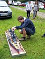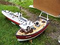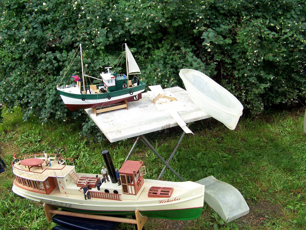 Na místo jsme přijeli kolem půl desáté, a byl to akorát čas, kdy na vodu šly parníky. Přiznám se, že jsem se těšil, protože parníky jsou moje srdcovka. Jaké však bylo moje zklamání, když jsem viděl, že na závodu se zúčastňují pouze tři modely. Útěchou mi bylo, že dva modely kormidlovali pan a paní Voráčkovi. Na jejich modely je pokaždé radost pohledět a musím uznat, že navzdory větru si vedly velmi dobře (tady si trošku šplhnu - paní Voráčková byla stejně lepší). Zatímco pára se předváděla na vodě, na břehu se začaly chystat bitevní lodě. Překvapivě byly také tři. Jestli se domluvili či co, mi není známo. Nutno říci, že tyto byly divácky vděčnější. Ne že by jejich jízdy byly natolik bravurní, či snad předváděly pyrotechnické efekty, to ne. Upoutaly spíše pobíhajícími kapitány po břehu, kteří se marně pokoušeli dostrkat radiové vlny anténou až k lodi. Holt spěch se nevyplácí a tady to platilo dvojnásob, stačí opomenout správně zapojit anténu, či ji nevytáhnout z vnitřku trupu a je na problém zaděláno. Ale i ony nakonec svou soutěž odjezdily.
