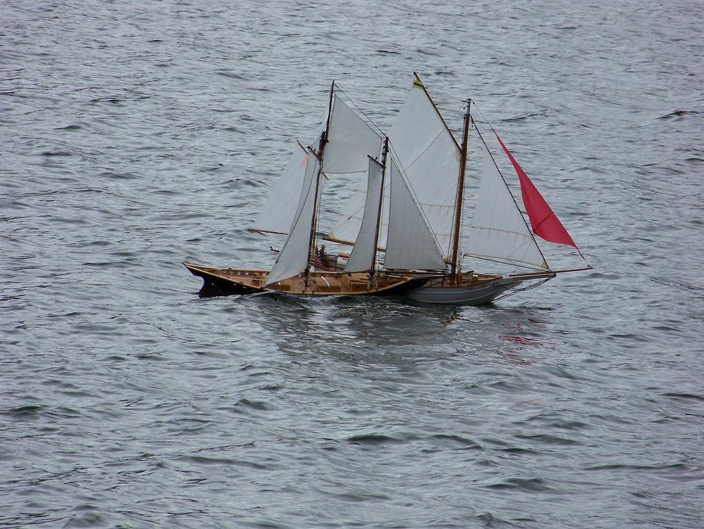 Při okukování jednoho takového, živly postiženého modelu, jsem se dal do řeči s jeho kapitánem Milanem Kroupou a posteskl jsem si, že je škoda, že máme doma jen takové „hračkoidní“ plachetnice, protože tohle je fakt „nářez“. Zkoumavě se na mě podíval a potom s takovým chápavým úsměvem povídá: „Ale to nevadí, příště je vem s sebou. Nezáleží na tom, kdes je vzal, ani co je to zač, hlavně že mají plachty a udrží se na vodě“. Potom mi ještě dal pár rad jak to udělat, aby se lépe ovládaly a lépe pluly a raději jsem ho už ponechal o samotě s modelem Endeavour, aby mohl v klidu posoudit rozsah způsobených škod.