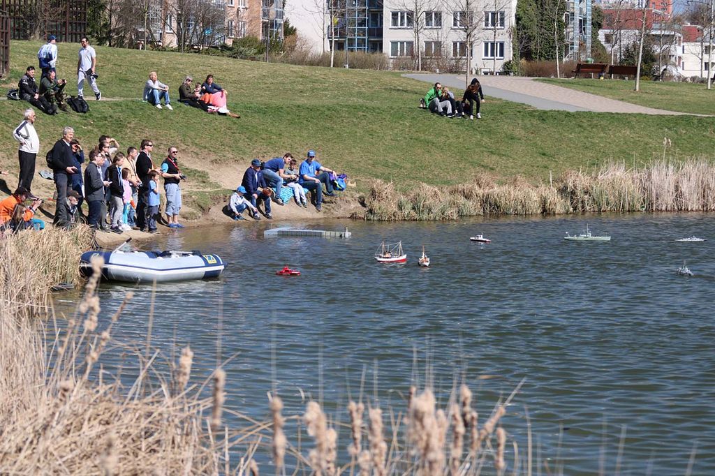 Po zimní přestávce jsme se poprvé sešli v sobotu 7. dubna za krásného počasí. Pohodový den u vody odstartovala zhruba hodinová příprava všeho potřebného (zde je na místě poděkovat všem, kteří přiložili ruku k dílu), co si soutěže plachetnic RG-65 a Footy žádají. Místem konání byl Stodůlecký rybník v Praze na Lužinách, což se ukázalo skvělou volbou, neboť prosecký Park Přátelství jednak nedisponuje potřebnou vodní plochou pro plachetnice RG-65, a pak v tamních jezírkách po zimě ještě nebyla voda, což zjistili účastníci středečního srazu…