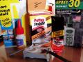 - překližka, ABS, nerez, hliník, guma, okna, plast - vteřinové lepidlo + aktivátor (opatrně, na plastu muže zanechat fleky)