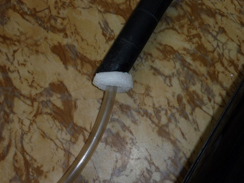 Adaptér do hadice vysavače zhotovíme z kousku polyuretanové pěny z obalů elektroniky, nebo korku, gumy apod. tak, aby dobře těsnila. Vlastní minilis je připojen hadicí menšího průměru, vnitřní cca 10mm, musí být tuhá, aby se nezploštila pod tlakem.