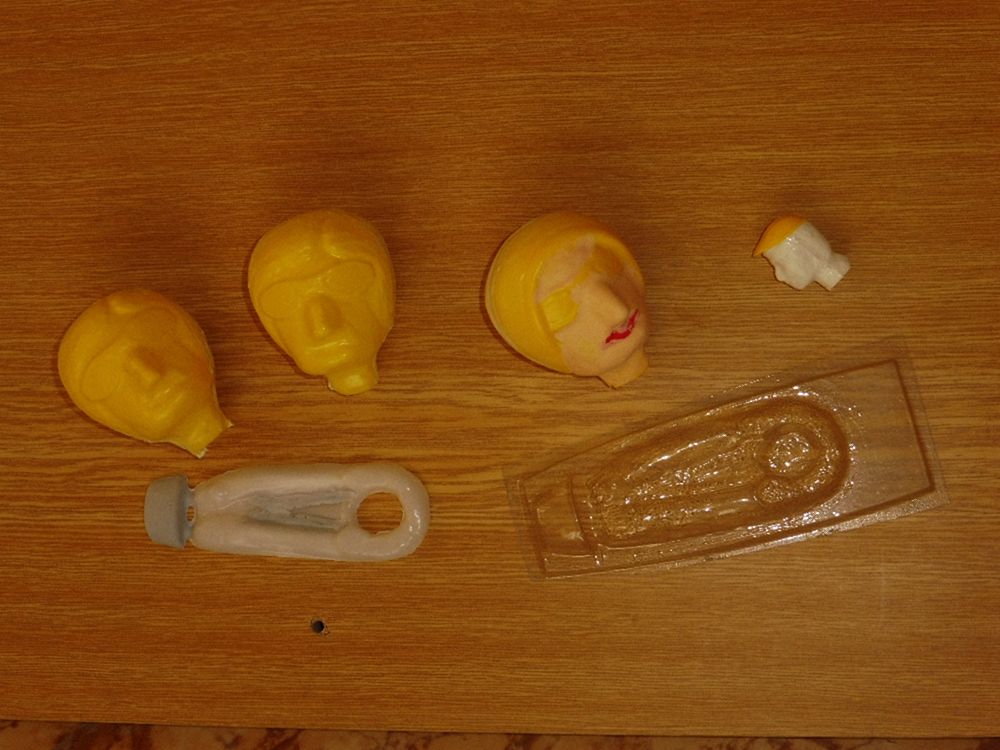 Hlavy ze dvou půlek, taženo na formu z moduritu, hlava s kšiltovkou ze tří. Tělo pilota se s výhodou barví zevnitř (lesklý povrch) i z vnějšku (podle barvy i matný). Po dokonalém odmaštění (do lakování se již povrchu nedotýkejte) použijeme barvy Humbrol, nebo Unicol, tempery, fixy, na stíny i měkkou tužku, podle vlastní zkušenosti.