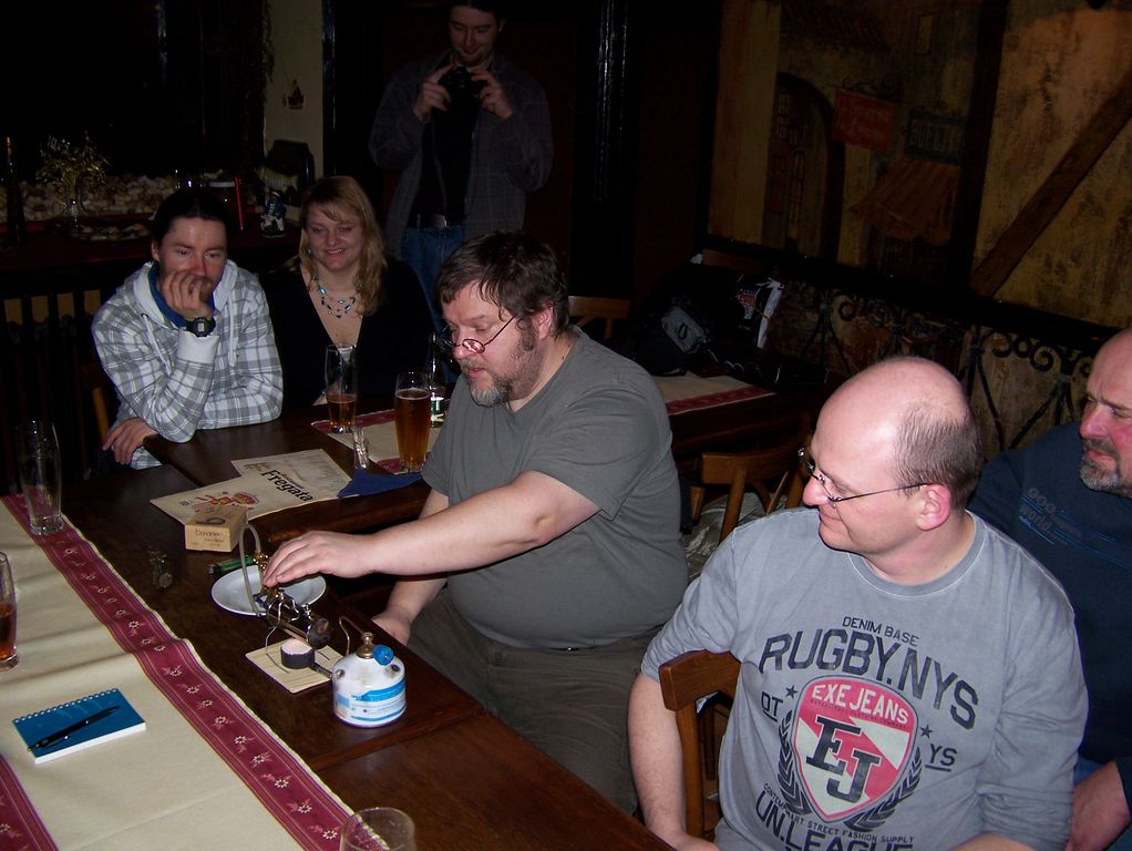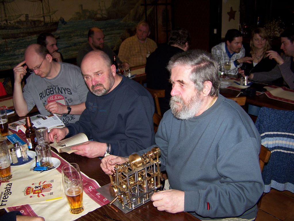 Krátce po nás dorazil Jiří Voráček, a pak už se zvoneček nad vstupními dveřmi snad nezastavil. Z parníkářů dále dorazili Jan Cibulka, Ivan Hořejší, Tomáš Kočí a Petr Stejskal. Nesmím zapomenout na Dadu a RomanaT, kteří s párou též koketují. Za plachetničkáře dorazili Jindra Culek se svou drahou polovičkou a Milan Dvořák. Málem bych zapomněl na Frantu Pilaře, který má spoustu modelů, mezi nimiž se najde i plachetnice.