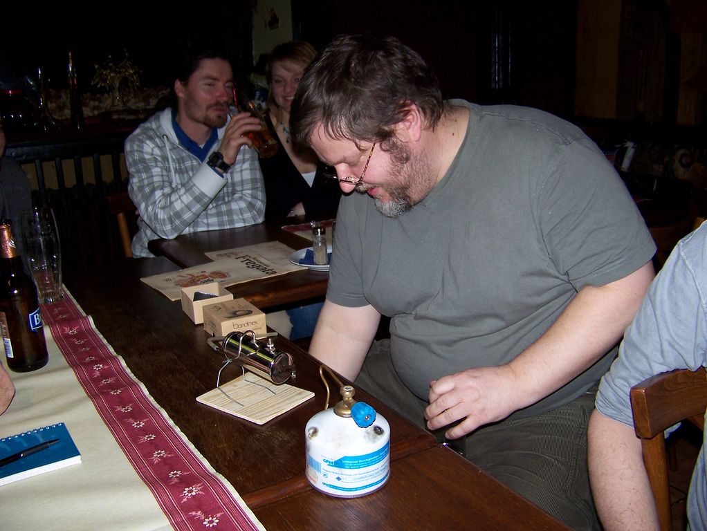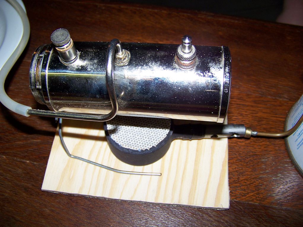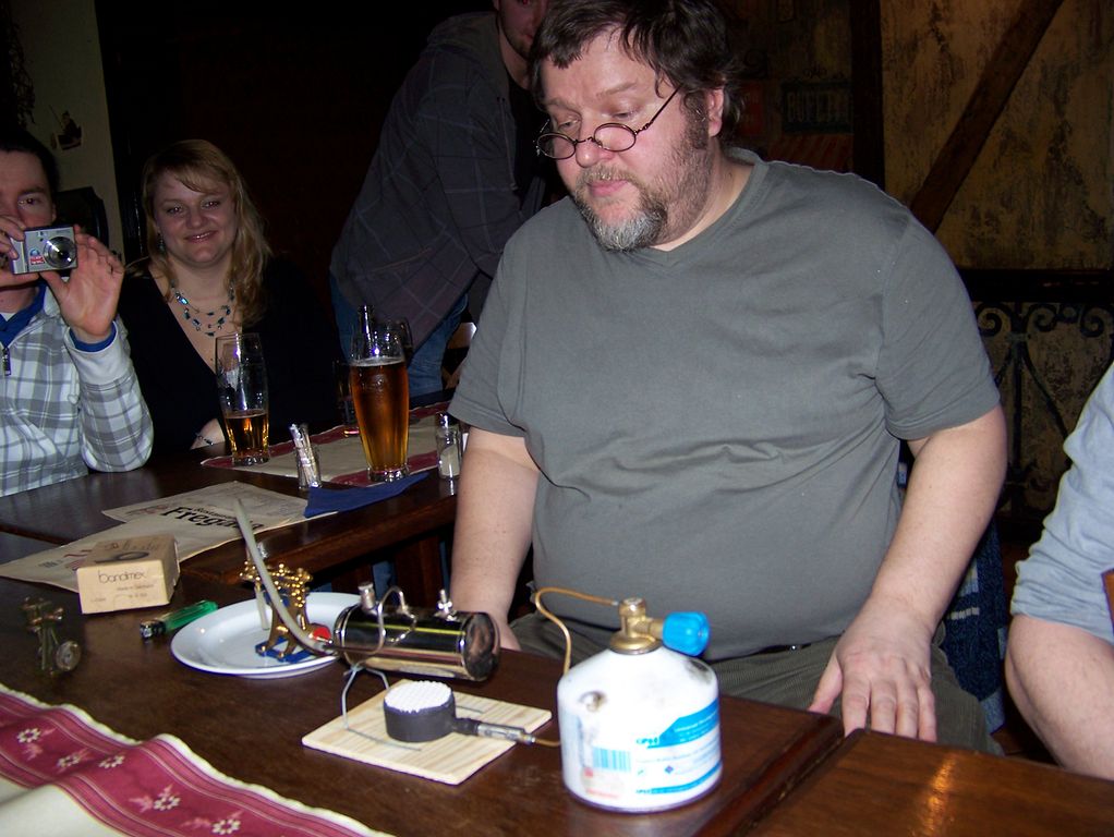 Po chvíli dal Ivan kolovat též keramický hořák, což byla neklamná známka toho, že je na setkání po všech směrech připraven. Zbývalo naplnit kotlík vodou, připojit bombičku a zapálit. Připojené video zachycuje, že k radosti parníkářům stačí málo.