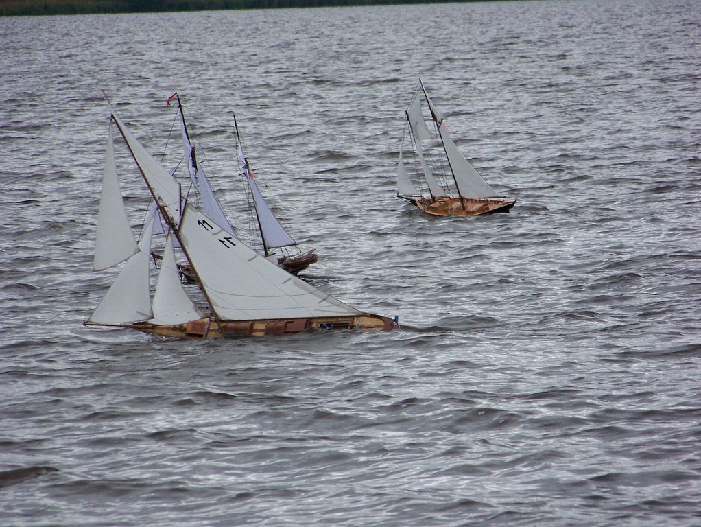 Pokud v pátek bylo ošklivě, tak v sobotu přímo děsně. Déšť se umoudřil až kolem poledne, aby kolem druhé začal foukat vítr krátce před soutěžní jízdou. Jeho síla lámala stěžně a vlny zalévaly modely. Aby toho nebylo málo, tak v polovině jízdy se přidal déšť. Po jízdě jako naschvál ustal a už to vypadalo, že dojde na další jízdu. Leč padla mlha, že nebylo vidět ani na vrcholovou bójku vytyčeného trojúhelníku. V duchu jsem si pomyslel, že by konečně vyniklo osvětlení, kterým jsou některé plachetnice vybavené.