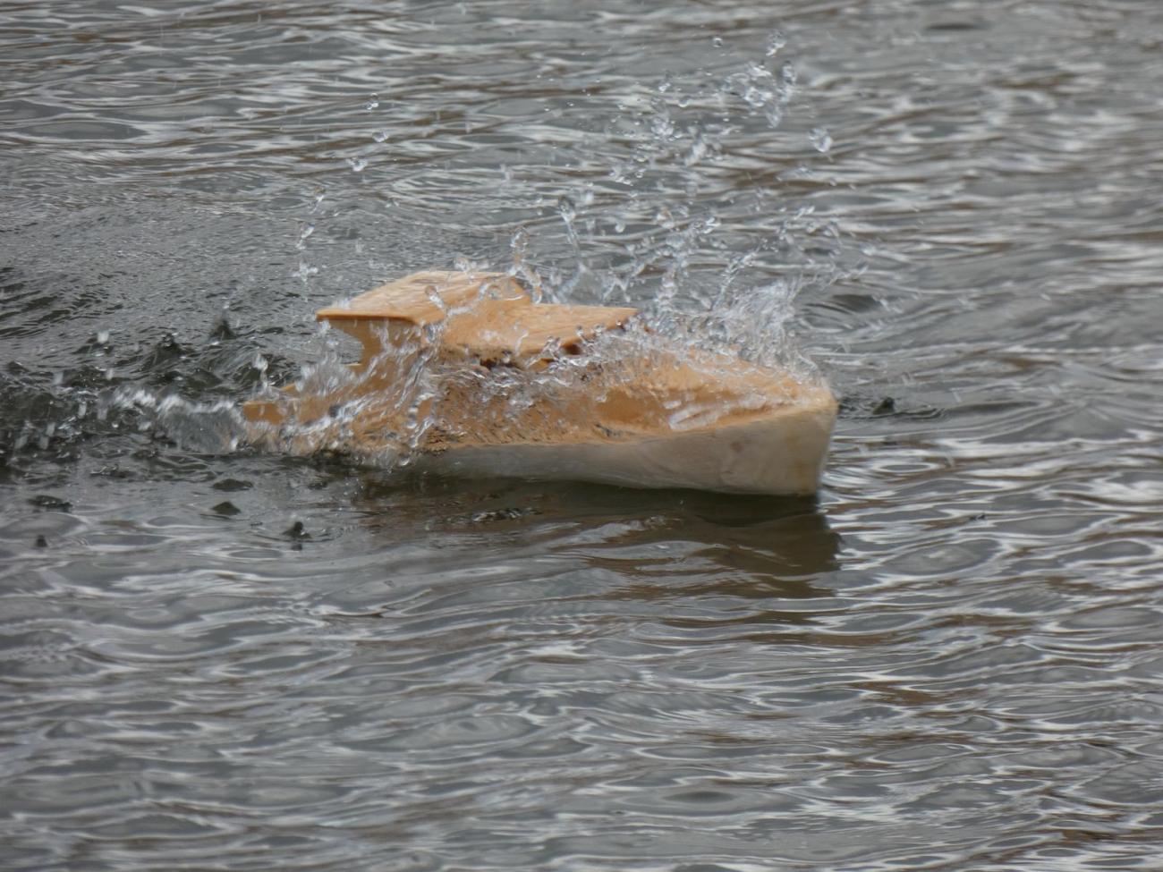 Sraz lodních modelářů, na který všichni po zimě nadrženě čekali, rozehnalo zhoršující se počasí. Temná mračna nad hlavou nevěstila nic dobrého, vítr připomínal vichřici a začínalo pršet. Kdo mohl, rychle odnášel své věci do sucha. Zatímco jindy „gumák“ po soutěži necháváme vyschnout na břehu, tentokrát jsme jej sbalili ještě mokrý.