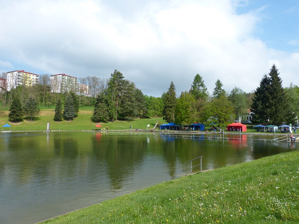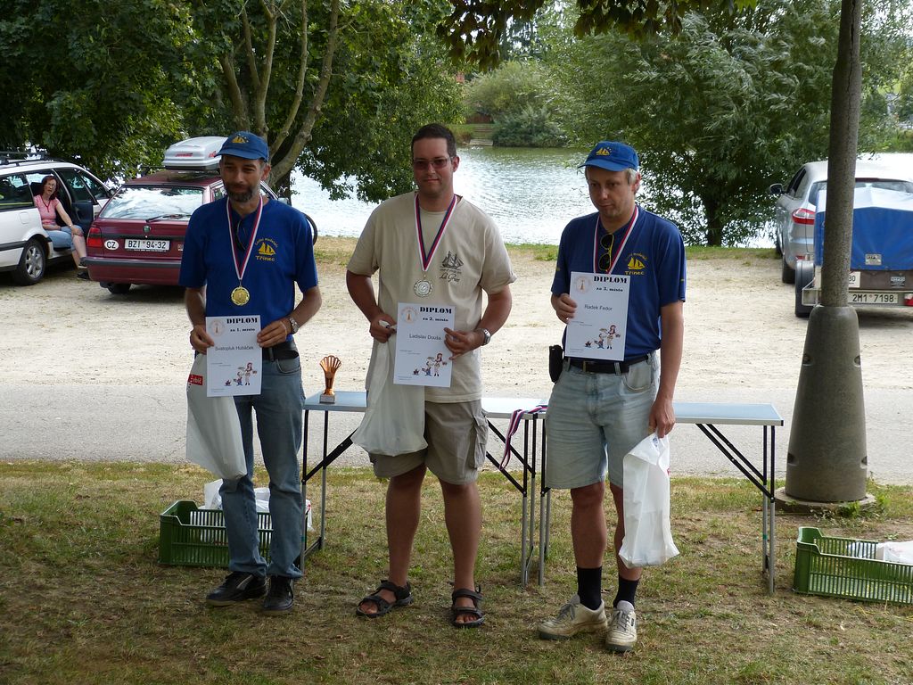 Horší je konstrukce doku, která byla kvůli mělčině podložena a nad palety nepříjemně vyčnívala. Že se nikdo v zápalu soutěžního boje zakopnutím nepřizabil, přičítám zázraku. Sám za sebe jsem bojoval též s tím, že mi tu a tam bota uvízla v paletě, když jsem nešikovně šlápl na spáru. Při větrných poryvech se občas hnula celá trať, což při nájezdu na couvání nepotěší, ale vždy se po chvilce ochotně vrátila na své místo. Méně zdatným soutěžícím by kvůli blízkému rákosí příliš nešlo dokovat zleva. Naštěstí po většinu času panovalo v prostoru doku bezvětří, při kterém bylo prakticky jedno, odkud model připluje. Pokud si to zde přečte některý z pořadatelů z RC klubu SIG.N.A.L. Třebíč, nechť to nebere jako kritiku, nýbrž jako pár rad, co by se ještě dalo zlepšit.