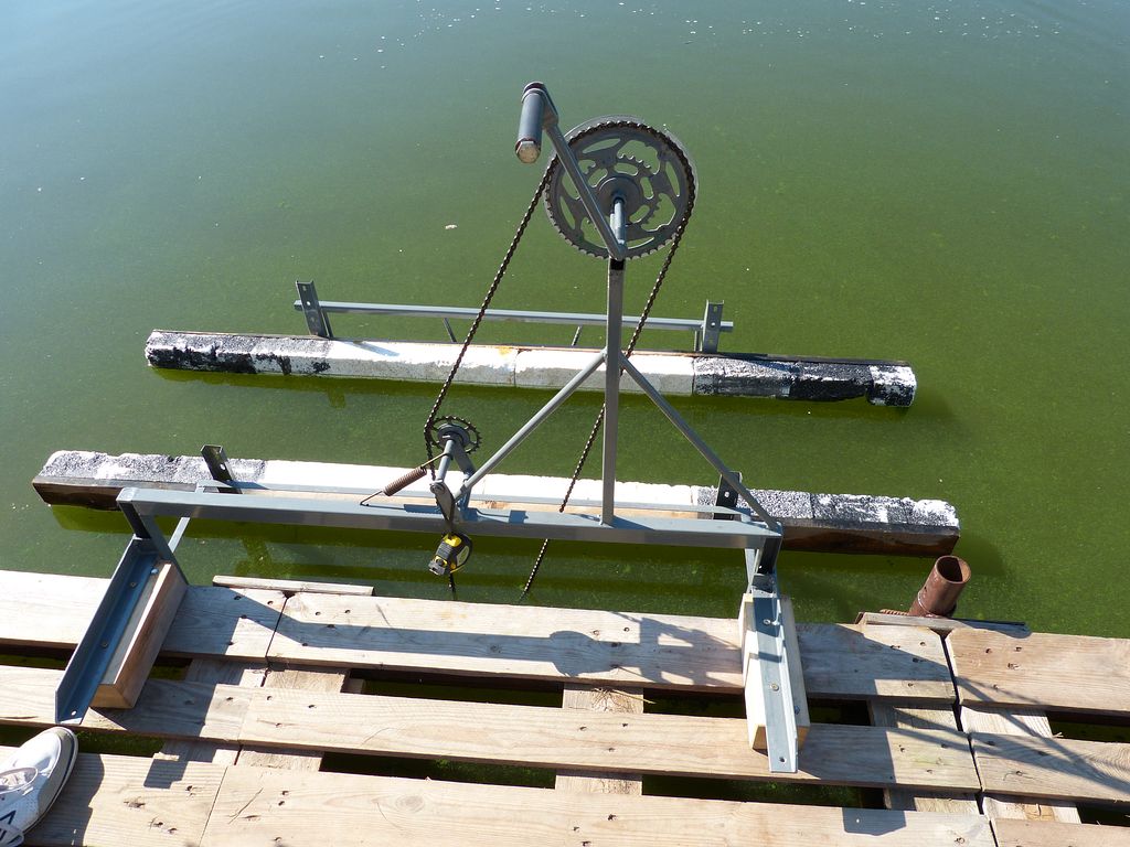 Podobné to bylo s výletem do Třince, kdy tentokrát MB/RomanT nevyrazil, a tak jsem jel z Písku zcela sám (v plánu bylo v odlehlém regionu týden přečkat a zapojit se do soutěže plachetnic na Těrlicku, jenže probíhající stavební práce u nás doma byly přednější). S povděkem jsem kvitoval, že konstrukce doku byla vylepšena - vybavena jak metrem, tak zvýšenou kličkou pro přestavování šířky.