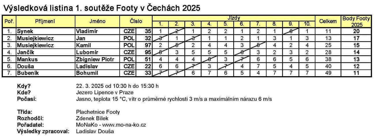 Na poli plachetnic Footy nemůže být o nově nasazené technice řeč. Jak Vladimír Synek (CZE 35) na prvním místě, tak junior Jan Musiejkiewicz (POL 32) na druhém a Kamil Musiejkiewicz (POL 97) na třetím místě zabodovali s osvědčenými modely. Ani nikdo další nevyplul s něčím novým.