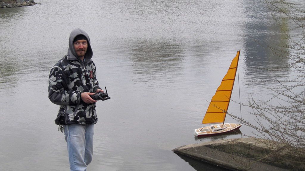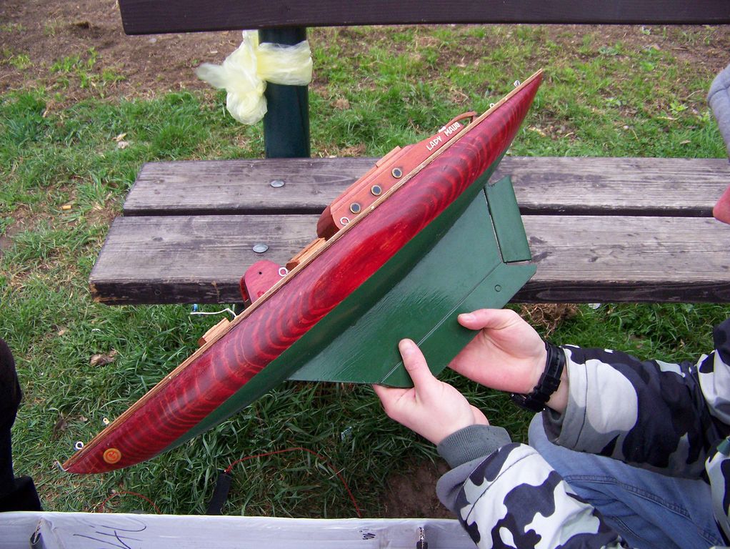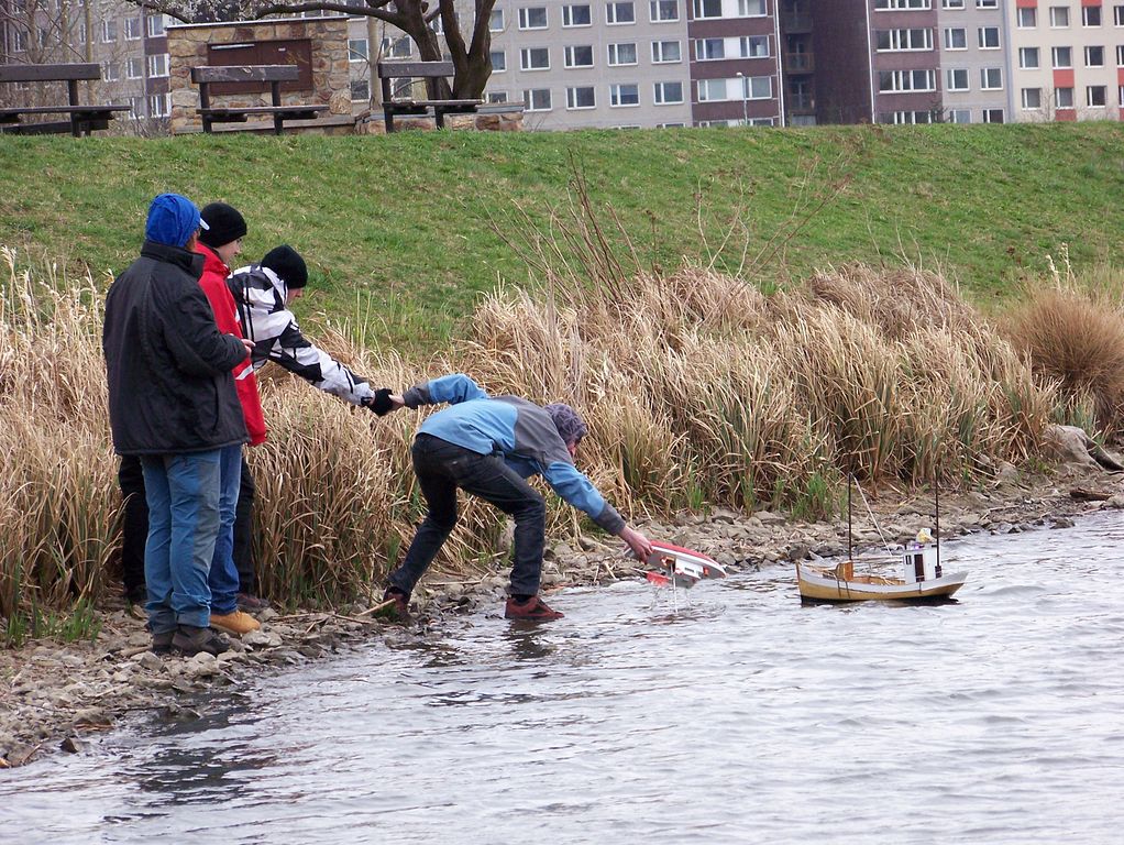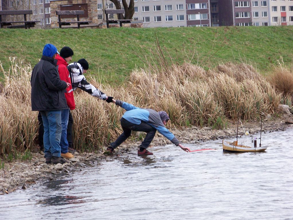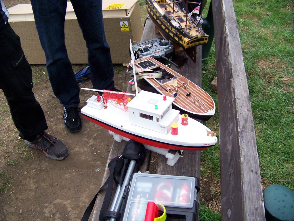 Po rychlém čaji jsem se ve chvíli, kdy déšť trochu ustal, navrátil k vodě, kde už Jindra Culek skládal plachetnici. Jakmile proces dokončil, přišly takové poryvy větru, až musel sundat kosatku. Nádrž byla po zimě ještě trochu upuštěná, a tak se dalo chodit po štěrkové pláži kolem rákosí a pohodlněji vyzdvihovat zatoulané modely. Absence záchranného plavidla se jednomu modelu stala téměř osudnou, nicméně naštěstí si to po převržení nenamířil rovnou ke dnu a bylo možné jej pracně dostrkat.