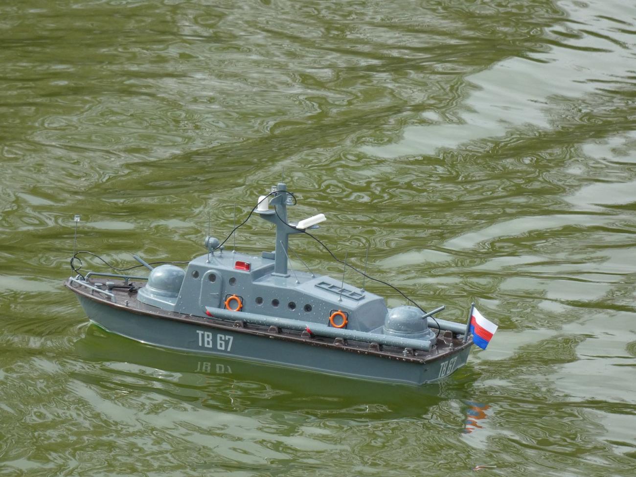 Sám jsem dorazil s německou policejní lodí Helgoland z dnes již historické hračky, kterou vyráběla Carrera v 70. letech. Jelikož se mi nepodařilo zprovoznit původní RC soupravu, putovala do trupu elektronika 21. století. Jen původní elektromotor i s převodovkou a lodními šrouby jsem s radostí využil.