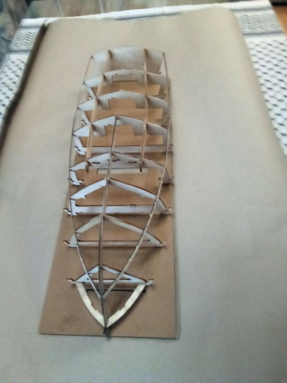 Jak bývá u stavebnic firmy Aeronaut zvykem, obsahovala přehledný barevný návod, perfektně zpracované překližkové i dýhové přířezy, zasklení oken, chráněné z obou stran fólií, dostatek skvěle provedené bižuterie včetně zábradlí, žebříku, schůdků a plata na zrcadle atd. Nechyběla ani bílá koženka na potah zadní sedačky a sedačky kormidelníka. Použil jsem i dodanou flexi spojku i lodní hřídel s pouzdrem, na který byla napájena redukce pro lodní šroub se závitem M4. Jen kormidlo ze stavebnice jsem nepoužil a vyrobil si o fous zvětšené z nerezového plechu. Hrubá stavba šla jako po másle. RC vybavení ve stavebnici samozřejmě chybí.