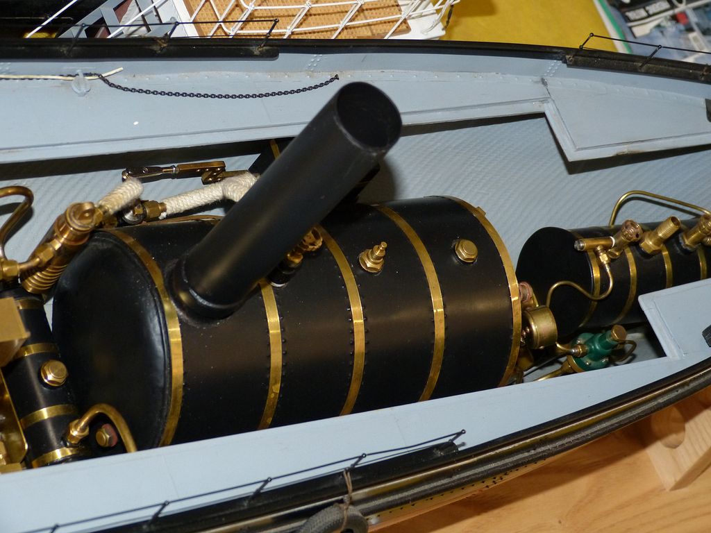 Zato Régis Boutier je na parníkářské scéně dávno znám. V Kaliningradu startoval s parníkem Frédéric Mistral v měřítku 1:25. Za model obdržel 91,67 a za strojovnu 90,67. Parní stroj je sice ze stavebnice, přesto komplikovaná strojovna bodovače zaujala.