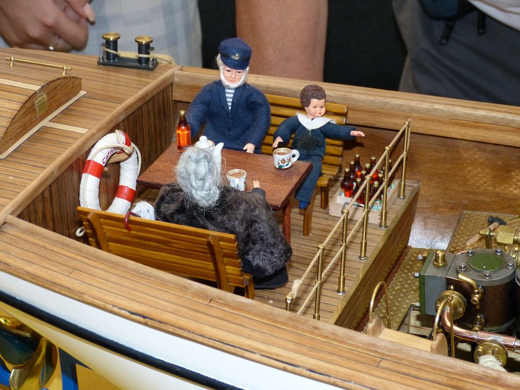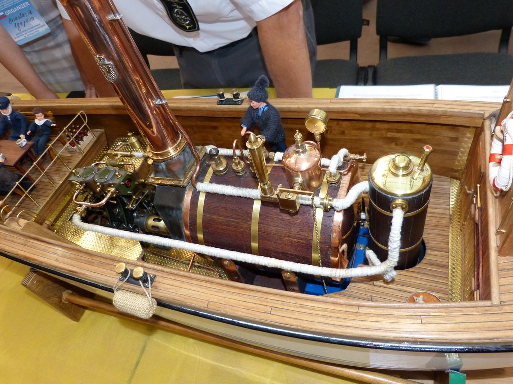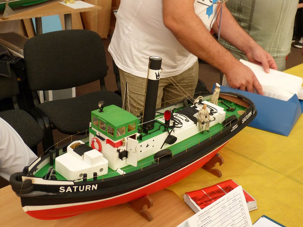 Parník Saturn (1:20) ruského modeláře Alexey Chuchumasheva na první pohled zaujme snad jen posádkou, jinak to po stránce exteriérové není nic neobvyklého. Brada člověku spadne až po sejmutí nástavby. Jednak díky důmyslnému systému, kdy se sejme téměř celá paluba naráz, a pak množstvím naleštěných aparatur v podpalubí. Vše se blýská, až oči přecházejí. Je-li vše doloženo fotodokumentací ze stavby, nemůže být debat o tom, že by strojovnu se šoupátkovým strojkem někde sekali do stavebnic jako Baťa cvičky. 97,67 je po právu nejvyšší udělený počet bodů za provedení parní strojovny. 96 bodů za model dává naděje na celkový úspěch a obhajobu titulu mistra světa.