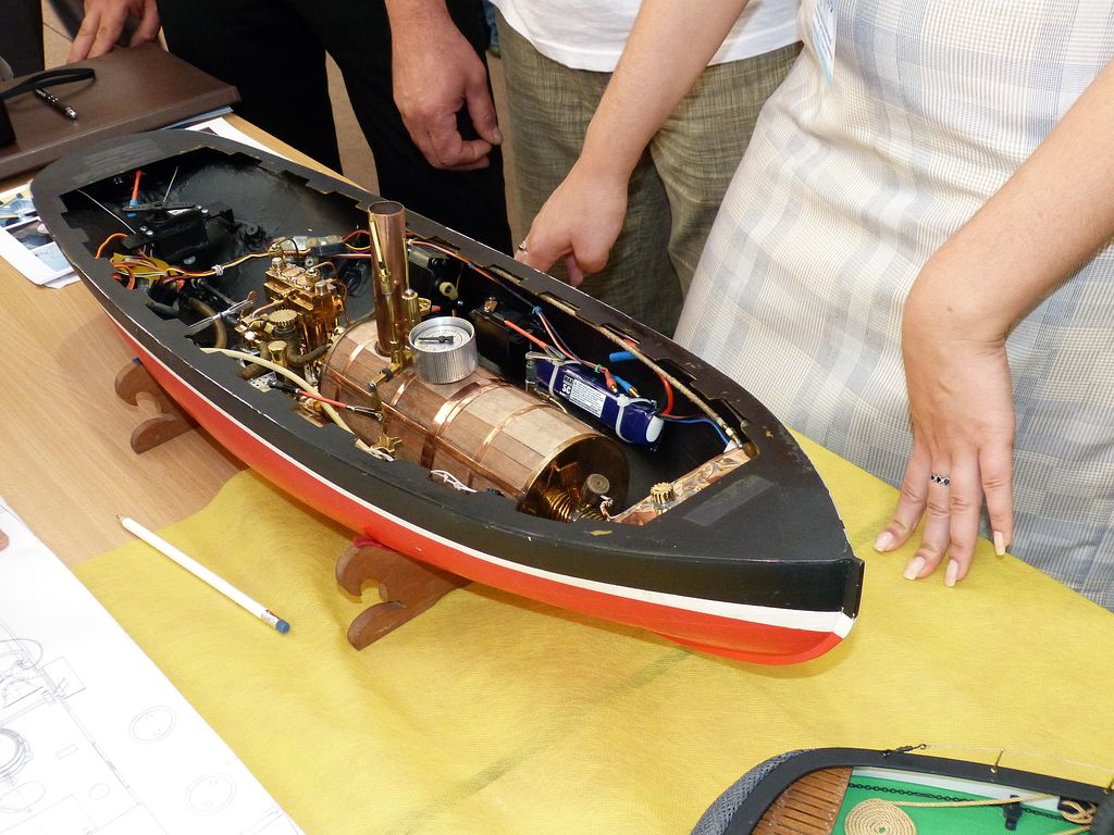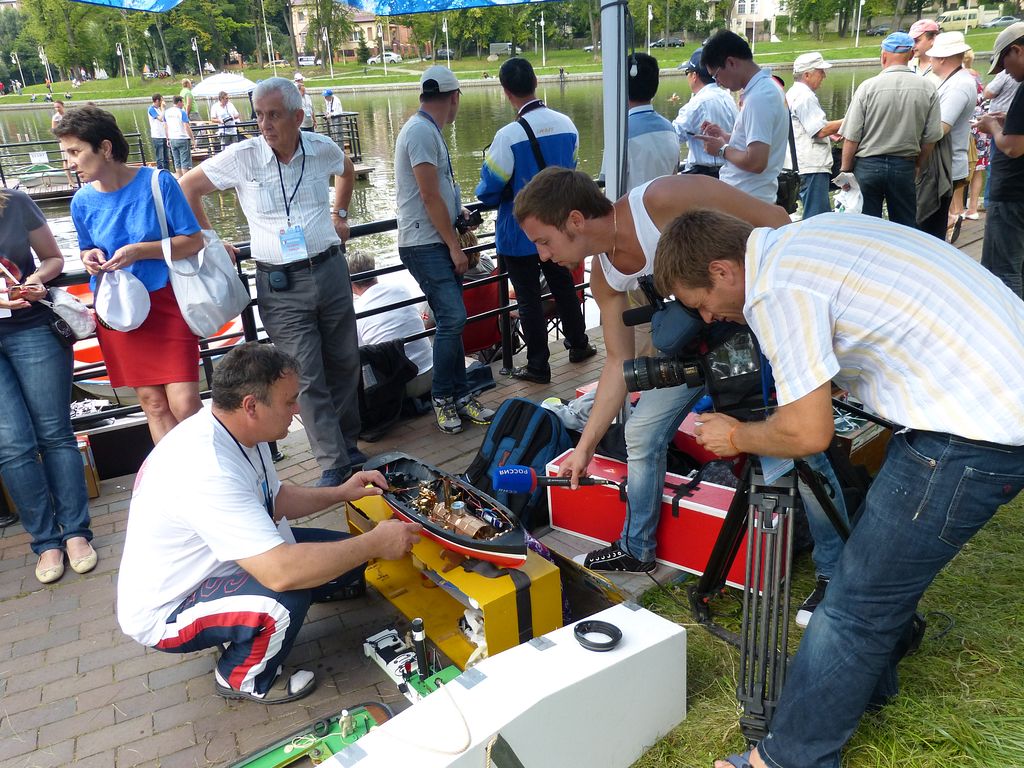 Realita byla taková, že hodnocení jednoho parníku trvalo půl hodiny. Jelikož tříčlenná komise rozhodčích potřebovala často hovořit se staviteli, byla na místě přítomná překladatelka z ruštiny, a tak jsem leccos odposlechnul. Na rozdíl od jiných fotografů a náhodných diváků jsem se na místě motal po celou dobu, takže to mohlo vypadat, že patřím k týmu ![]()