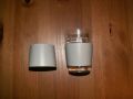 Pustil som sa do zháňania vhodného materiálu na telo dýzy. Inšpirovaný článkami, uvažoval som nad výrobou formy a odlievaním, čo nie je práve najmenej pracná metóda. Vysústruženie tela dýzy sa mi rovnako nejavilo najjednoduchšie. Uvažoval som aj nad nápadom PetraP, ktorý na telo dýzy u svojich „kortoviek pro chudého muže“ použil materiál z plastových pohárikov. Medzi týmito úvahami som vyrazil do obchodu s vodoinštalačným materiálom s cieľom zistiť, aký ponúkajú sortiment novodurových trubiek a dielov, používaných na odpady. No nič z toho mi na moje 50 mm lodné skrutky Robbe rozmerovo dobre nesedelo. Po ďalších úvahách ma napadla myšlienka, pokúsiť sa vyrobiť telo dýzy z novodurovej trubky vhodného rozmeru jej tepelným tvarovaním na vhodnom kopyte. Nápad PetraP s pohárikmi mi bol od počiatku simpatický a časť z neho som využil. Rozhodol som sa skúsiť použiť ako kopyto pre tvarovanie trubky sklený pohár. Po premeraní a zhodnotení tvarov rôznych pohárov zostali v hre dva. Klasický decový pohár dobre známy z každej krčmy a dvojdecový pohár od Coca-coly. Vzhľadom na hrúbku skla a obavy z prasknutia pohára vplyvom prehria pri jeho kontakte s horúcim plastom a tým i možnostou prípadného poranenia, padla voľba na klasický krčmový decák. Kúsky novodurovej trubky priemeru 50mm som mal k dispozícii. Vrhol som sa do práce. Postup bol nasledovný.