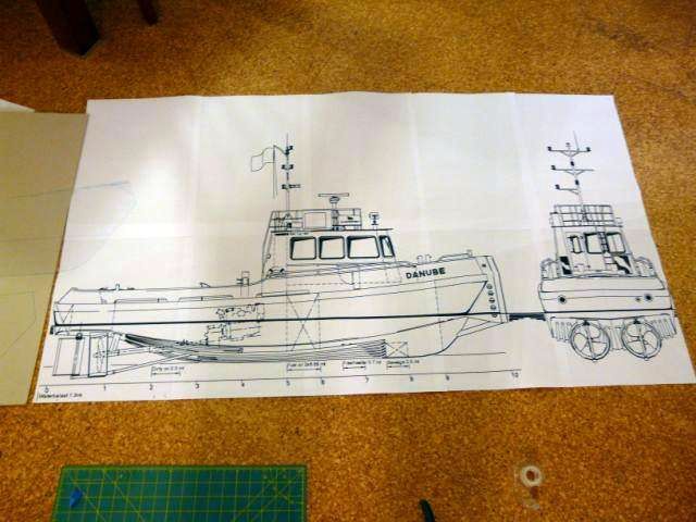Po niekoľkých selekciách sme vytypovali tento remorkér. Po zväčšení plánu na kopírke do požadovanej veľkosti a jeho pozlepovaní z listov A3 sa mohlo začať.
