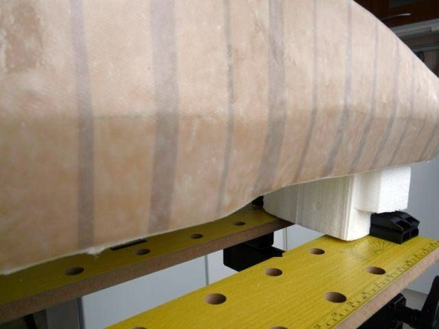 Takže v konečnom dôsledku bol popísaný trup laminovaný 3x 125 g/m2 a dodatočne zvnútra ešte jedna vrstva tkaniny 250 g/m2, takže spolu cca 625 g/m2.