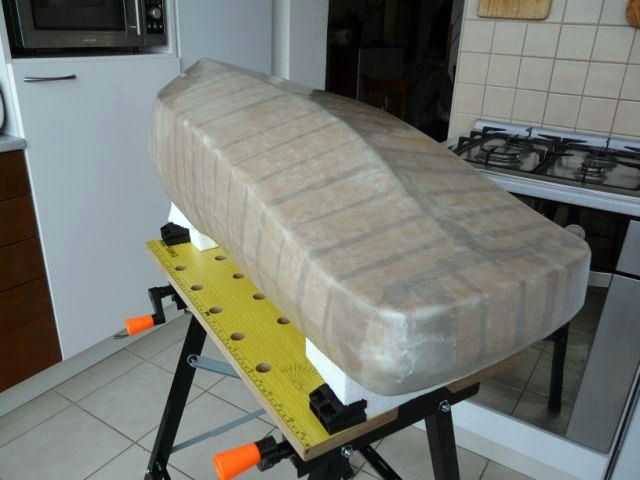 Keďže zámerom bolo polystyrén z budúceho laminátového trupu vybrať bez väčších problémov von, nasledovalo polepenie trupu baliacou páskou (PVC), ktorá mala slúžiť ako separátor.