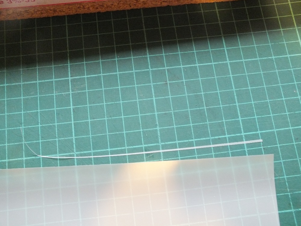 - Na vrch přilepím 3M pásku, ohnu zbytek mylaru, označím a oříznu na míru. Do ohybu dám 0,6mm uhlíkovou tyčku a zalepím (obr. 18 až 21).