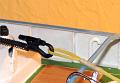 Po dvou sezónách provozu se v laku udělaly malé praskliny a v některých místech se objevil malý průsak. To je dobře viditelné z vnitří strany trupu. Nechal jsem tedy trup vyschnout a povrchový nátěr třemi vrstvami laku opravil. Ale je jen otázka času, kdy zase bude potřeba nátěr opět opravit.