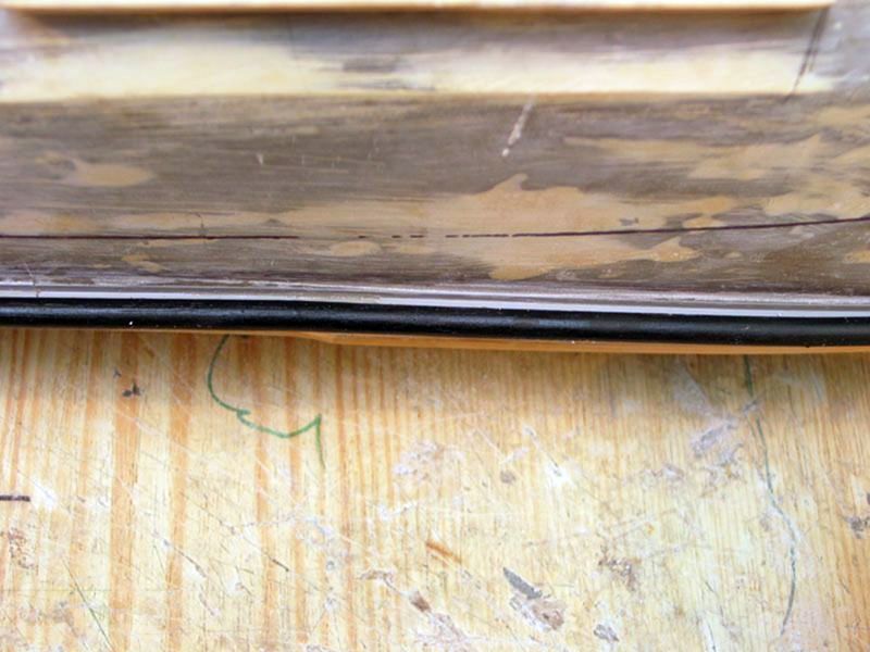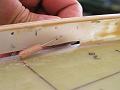 špendlíkama , aby od trupu neodpadla a držela na svém místě (otvory pro špendlík jsem vyvrtal těsnější nejen v profilu, ale i v trupu). Po vytvrzení epoxydu jsem gumový profil namazal