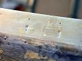 otvory jsem měl naznačené, rozšířil jsem je tak, aby trubičky přesně pasovaly. Zevnitř trupu jsem vlepil k palubě dřevěné destičky pomocí 24 h. epoxydu. Proti posunutí byli zajištěny vruty,