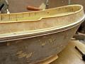 Z uschované šablony jsem si vytvořil novou dvoudílnou, dělenou podél. Důvod je ten, abych mohl vytvarovat palubu jak v příčném tak i podélném směru. Po přesném zhotovení