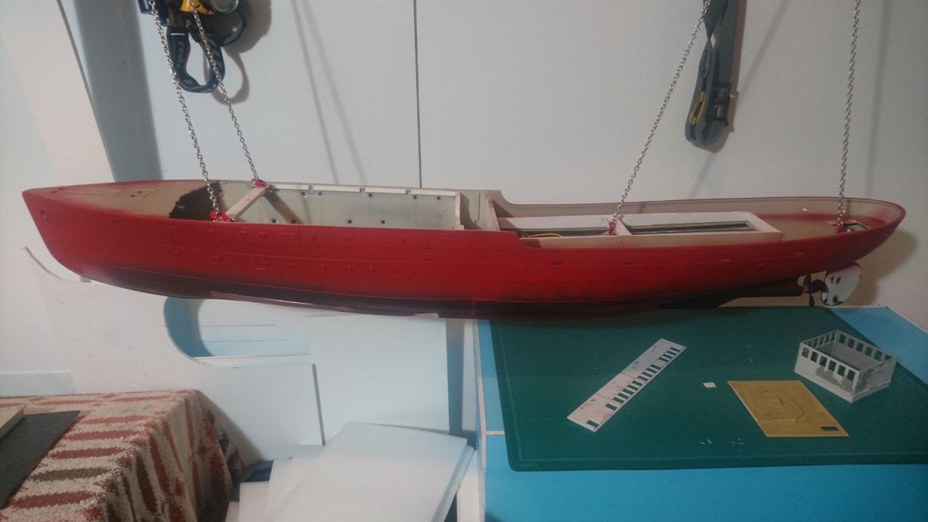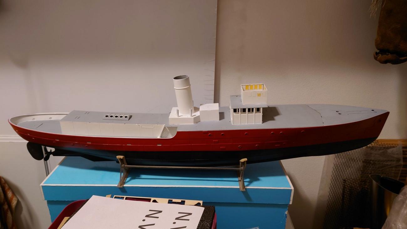 Zatímco se při stavbě modelů ze stavebnice jednotlivé díly lepí k sobě, v tomto případě bylo zapotřebí původní model z větší části rozebrat a odbarvit. To šlo překvapivě dobře, model byl lepen jen sekundovým lepidlem a po letech na poličce spoje držely jen silou vůle. Na odbarvení pak zabral hydroxid sodný. Přestavba na plovoucí model nebyla složitá, korvety jsou moje srdcové lodě – mám dohromady tři – takže jak a co udělat v trupu bylo, řekl bych prkotinou. Protože u majákové lodě neočekávám žádné velké, natož rychlé plavby, jako motor byl použit MIG 490, pomaluběžný motor ze starších zásob. Samozřejmě lože motoru je také připraveno na to, kdybych potřeboval změnit motor na nějaký z řady 600.