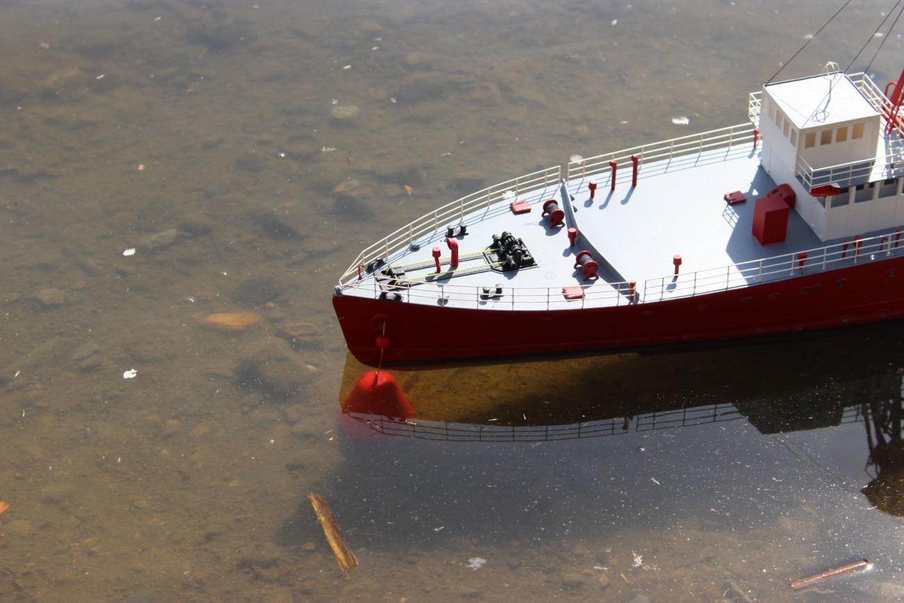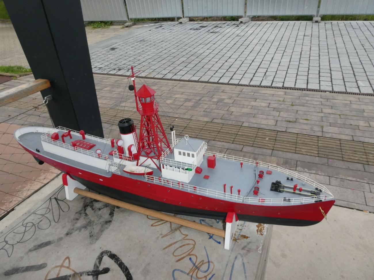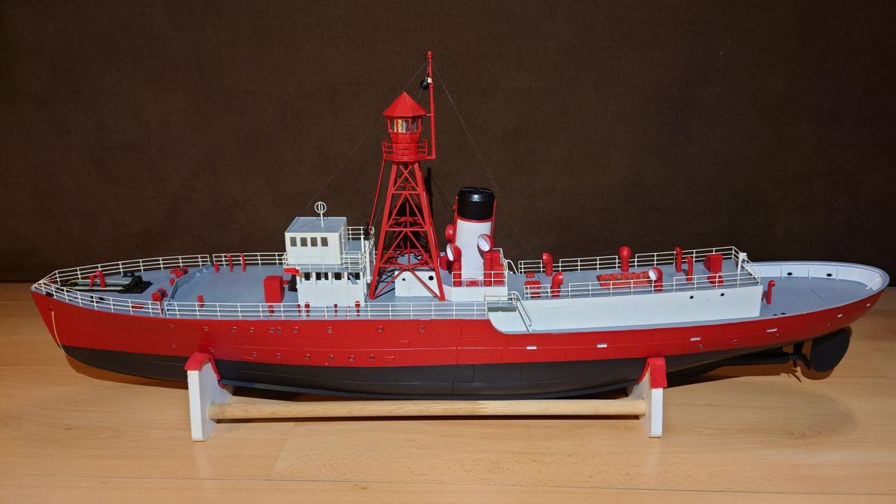 Stavba byla, řekněme, živelná, určitě se nejedná o maketu. Loď je samozřejmě vybavena i na noční plavby, takže nechybí funkční poziční světla. Poslední věcí, která chybí je pak velký bílý nápis na boku označující majákovou loď – její jméno nebo umístění, které se pak zanese do map. A nyní jen večerní jízdy.“