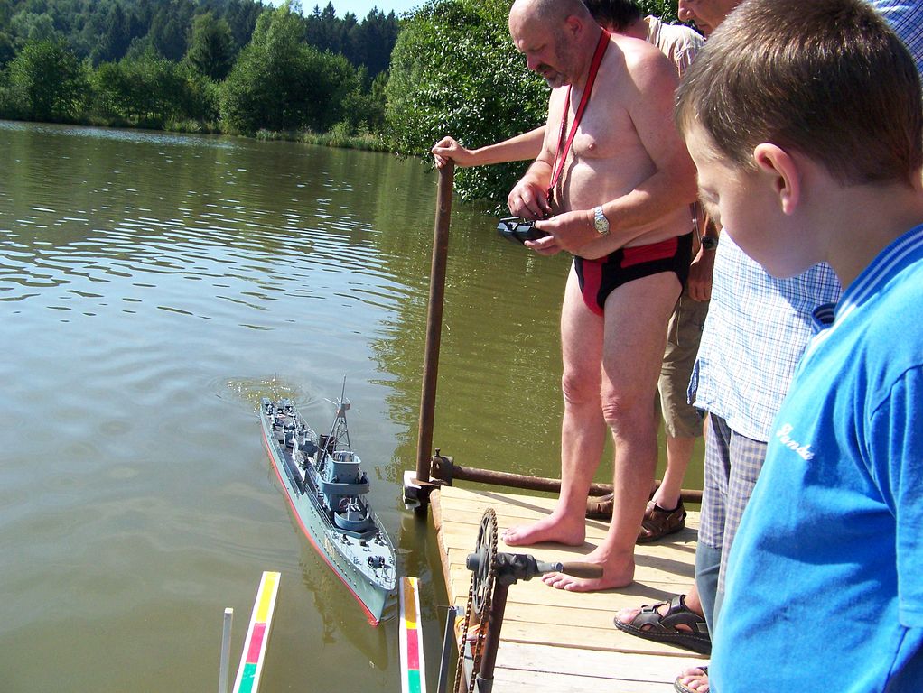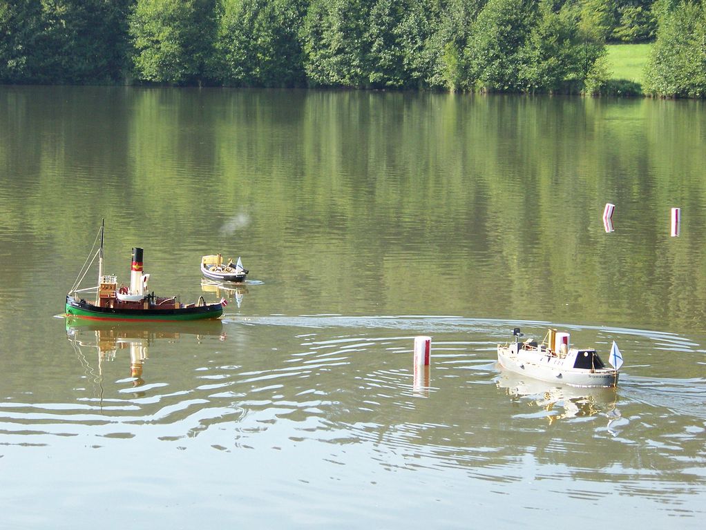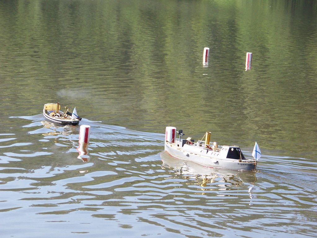 Během polední pauzy, kdy na všech startovištích panoval klid, šel Tomáš Kočí testovat odhadem dvoumetrový parník K147. Díky dvěma lodním šroubům může model manévrovat i na malém prostoru, a to za přispění protitahů. Než se povedlo roztopit pod kotlem, okupovala závodní dráhu jedna „káčková“ plachetnice s délkou trupu 1,9 m. Obecně lze říci, že pauz hojně využívali různí modeláři k prohánění modelů mimo soutěž.