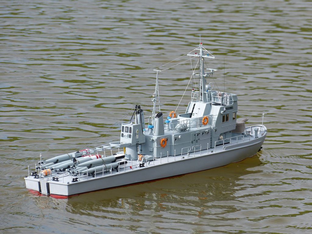 Předloha (teď na 90 %) sloužila nebo možná ještě slouží k přepravě a lovení cvičných torpéd. Je podle plánku z polského modeláře, cca 80. léta.