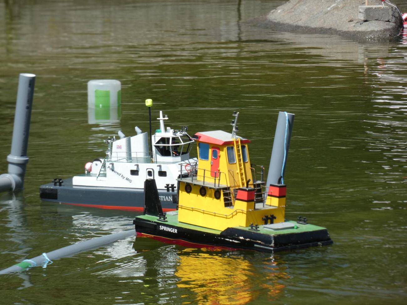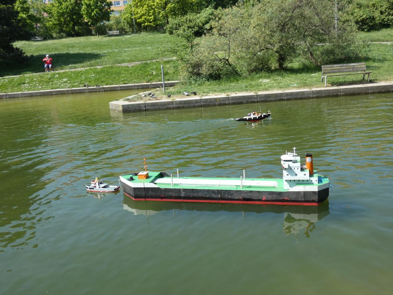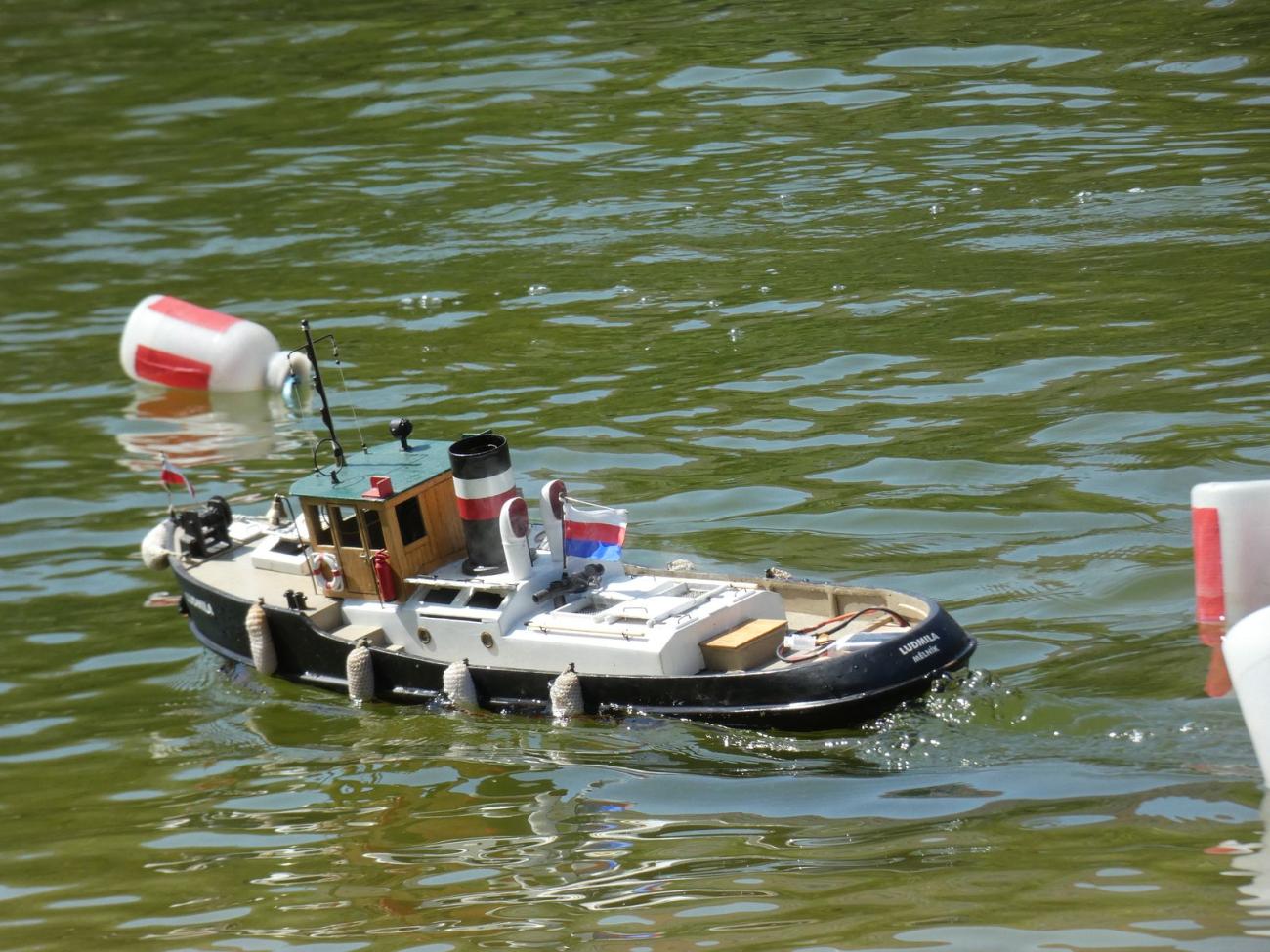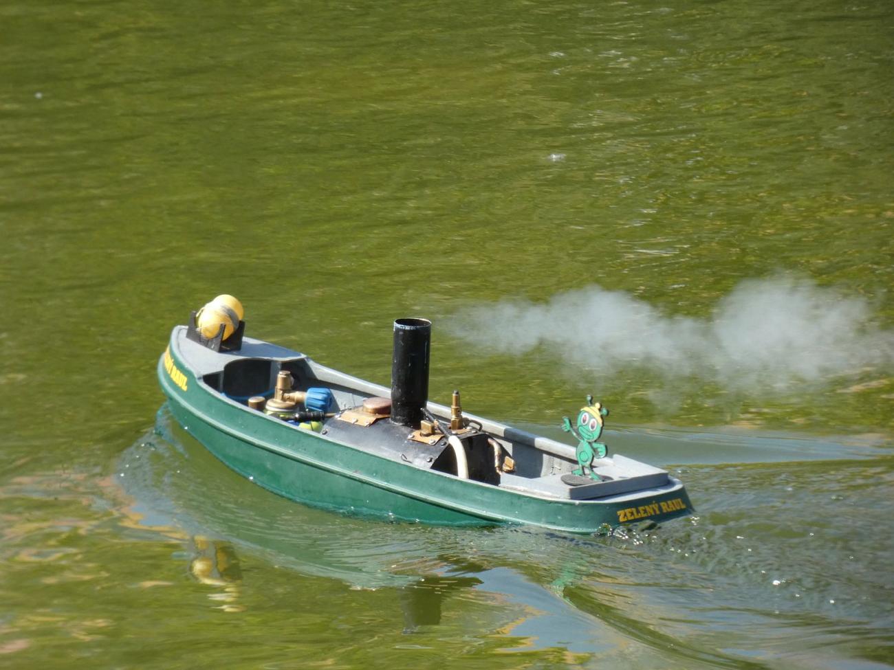 Jakkoli to zpočátku vypadalo, že tam budeme s Dejvem prakticky sami, poslední dny před akcí ochotných modelářů přibývalo. Impozantní Velký Kačer, kterého jsme předváděli poprvé, sice budil pozornost, ovšem stěžejním lákadlem malých i velkých byly parníky Miroslava Beneše. Zeleného Raula dokonce půjčoval, za což mu velmi děkuji. Další poděkování jistě zaslouží Vojta Kuchta, který též setrval celý den a půjčoval, co se dalo, čímž mi vytrhl trn z paty poté, co se ráno ukázalo, že jsem během uplynulého roku z druhého Springera, kterého jindy než na této akci nepoužívám, vyndal regulátor.
