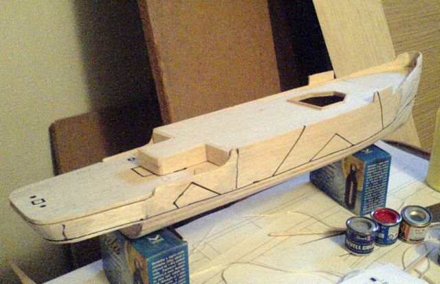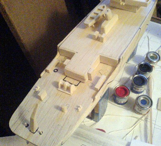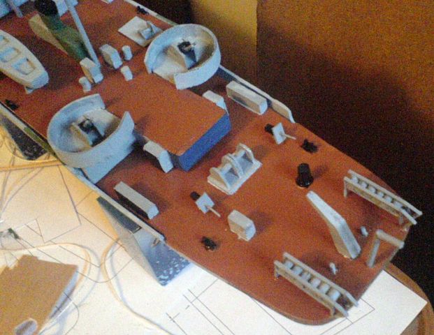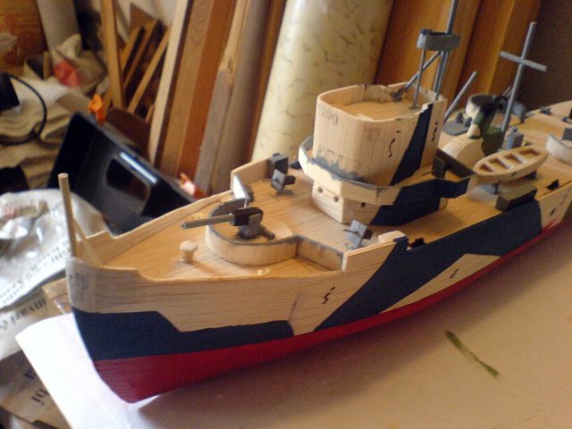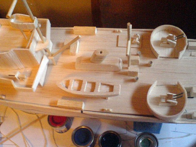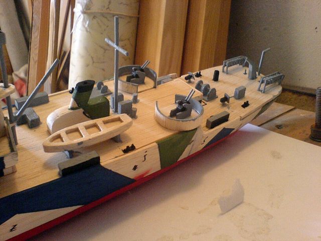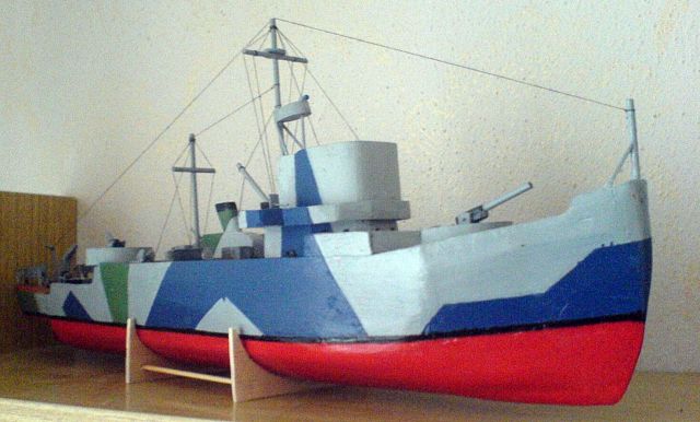 Posílám pár fotek ze stavby mojí minonosky třídy Admirable. Je to takový můj první pokus o lodní model, takže zpracování není úplně v pořádku. Jako předloha posloužila papírová vystřihovánka na stránkách Digitalnavy. Měřítko bylo upraveno na 1:125, jinak všechny plány jsem si kreslil sám. Jako pro strojního projektanta to byla brnkačka.