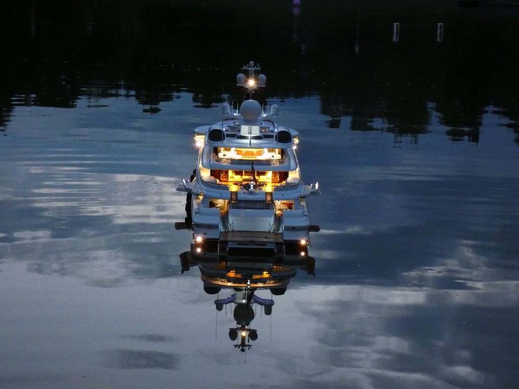 Tím se však Jiří Bilina trápit nemusí, jelikož svou maketu v měřítku 1 : 68 stále ještě převeze v bedně uvnitř osobního automobilu domů. Jelikož je model vybaven řadou funkcí, po samotných soutěžních jízdách došlo za podvečerního šera k ukázce všeho, co model umí. Kromě různých zvuků a přehrávání hudby došlo též na ukázku spínání osvětlení. Počet nezávislých okruhů jsem nepočítal, jistě jich bylo nejméně pět. Však se o napájení použitých LED a další pomocné funkce stará akumulátor podobné kapacity jako hlavní pohonný. Jestliže předloha může sklápět plošinu na zádi a otevírat boky, model nezůstal v tomto smyslu pozadu. Opravdu parádní podívaná – viz video.