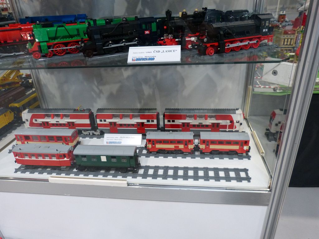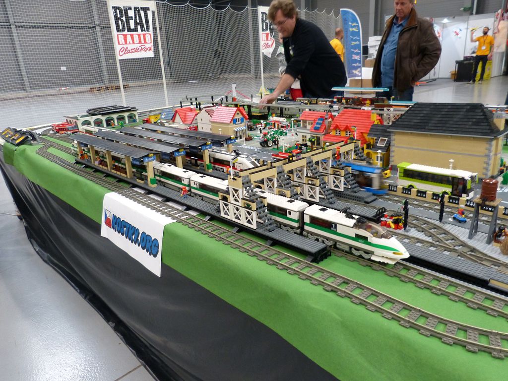 Bazén opanovali opět němečtí lodní modeláři, a tak jsem věnoval pozornost okolo stojící expozici kolejiště z Lega. Vláčky z kostek mě provázely v dětství. Dalo by se říci, že až do věku, kdy už si dospívající hoši s touto stavebnicí nehrají. O to více mi bylo sympatické vidět zde pána v pokročilejším věku. Lego na půdě časem vyhrabu a budu se tvářit jako železniční modelář.
