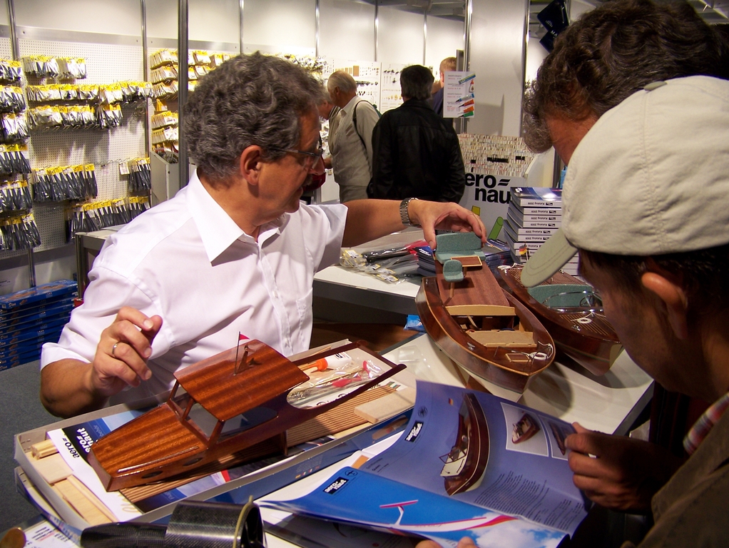 Jelikož jsem se opět přidal k Voráčkovým, tak jsme se vždy po pár hodinách scházeli u bazénu, abychom si doporučili nějaké vhodné nákupy, jenže letos se nic moc sehnat nedalo. Pokud člověk neprovozuje modely železnic či letadel, tak má téměř smůlu cokoli koupit. Situaci zachraňuje pár prodejců různých Al a Cu profilů, kteří mají opravdu velký výběr, jenže jak člověk nemá v hlavě nějakou ideu, co by určitě potřeboval, tak nekoupí nic, protože na koupení od všeho po pár metrech prostě nemá prostředky. Pan Voráček koupil akorát polotovary na kotel, jinak také moc z oblasti parníků nesehnal.
