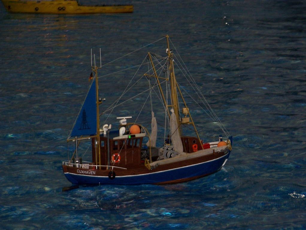 Jinak co se týká vlastní výstavy. Mohu potvrdit co píše Ladous - nákup materiálu nebo nějakých součástí na lodi nebyl téměř možný. Jen několik drobností typu lišt od firmy Raboesch. Pokud člověk chtěl nějaké vystavené díly na lodě, byl zde pouze odkaz na internetovské stránky, kde bylo možno si toto objednat. U bazénu jsem byl také několikrát, viděl jsem ukázku tažení ropné plošiny a nějaké záchranné práce kolem toho. K vidění byly i nové lodě oproti loňsku. Jednou z nových lodí byl Fair Play 21 od Andrého z Německa. Ten ještě loni jezdil s Pacific Buccaneer.