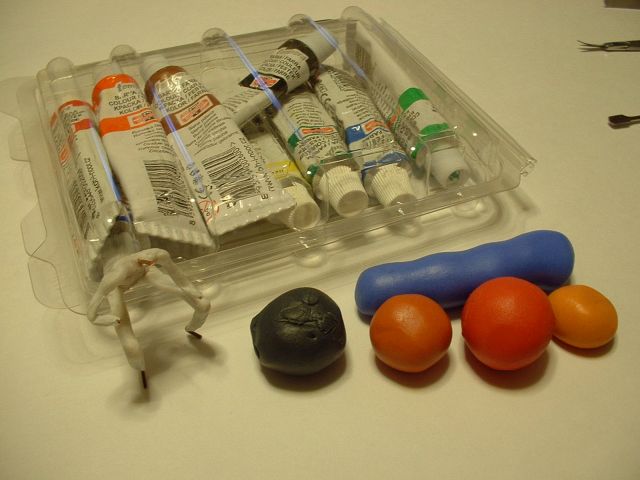 že do mističky dobře prohněteného materiálu vytlačíme temperovou barvu a mističku uzavřeme. Pak ji v dlaních zválíme