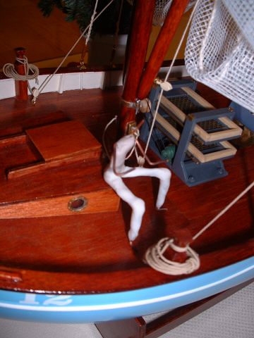 Usadíme námořníka na místo, skalpelem začistíme otřepy, dobrousíme botky aby pěkně sedly k palubě a pod. Při údržbě lodi je