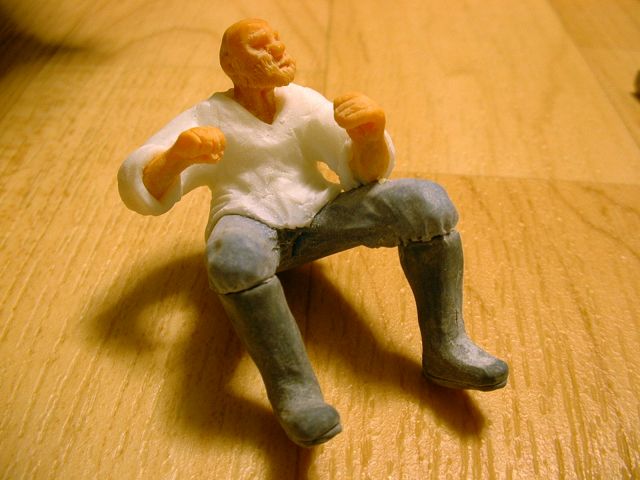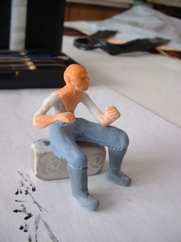 Protože námořník sedí na rovné ploše, posadil jsem si jej na kovovou destičku na hranu stolu a vytvaroval mu kalhoty.