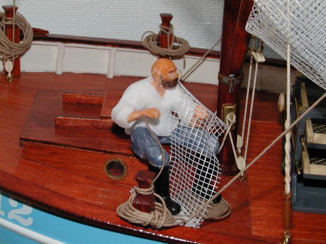 Jako názorný příklad nám poslouží námořník opravující plachtu na lodi Krabe TON (měřítko 1:25).