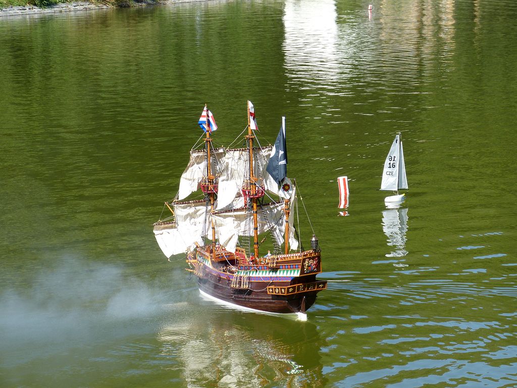 V neděli si cestu k vodě našli jak diváci, tak modeláři z okolí. Byly tak k vidění parníček Laura Ivana Kräutera či 23kg Golden Hind sira Francise Drakea z loděnic Petra Šebesty.
