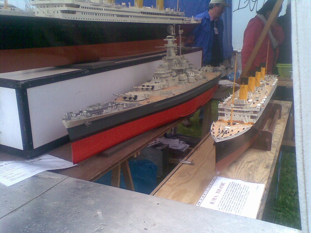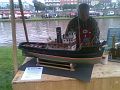 Po řece se proháněla pirátská loď. Sice to byl diesel, ale komu by to vadilo, když vozila děti, že? Vedle ní se ovšem proháněla parní lodička vozíc cestující, kteří si to opravdu užívali, hlavně tu vstupenku. Jako vloni, přijeli i letos mí známí z Německa a Rakouska a přivezli opravdu unikátní kousky. Třeba italský remorkér v měřítku 1:40 o délce 1140 mm poháněný benzinovým motorem vlastní konstrukce 40 ccm chlazeným vodou. Model obsahoval elektrický startér, tlačítkem na vysílači se startoval, pokud by se motor zastavil, měl elektromotor, na který by pohodlně dojel ke břehu. Lodní šroub měl natáčecí listy, takže nebylo třeba zpátečky. To vše modelář postavil za dva roky. Inu ti důchodci. Až vzadu pod mostem se ukázali modeláři s dvěma modely Titanicu a velice hezkou bitevní lodí Alabamou v měřítku 1:100. Na vodu se to báli chlapci dát, byl docela silný proud a tahat to někde ze splavu u elektrárny by se nikomu nechtělo.