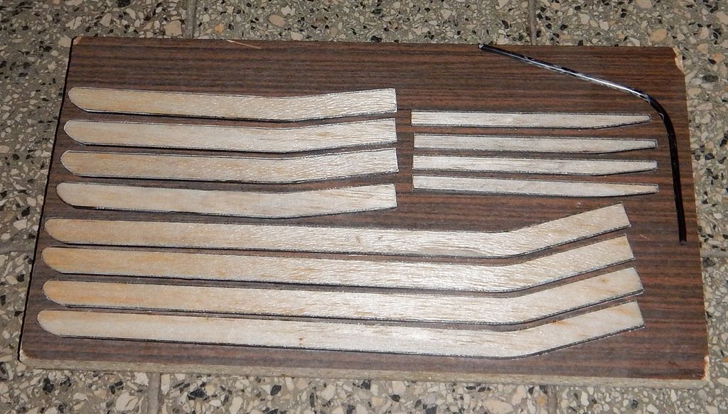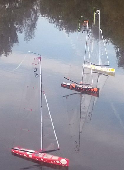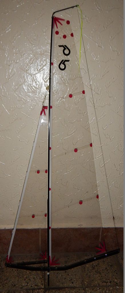 Kolečka používám na konec výztuh zadního lemu (vzpír) a u mainu i na místa, kde budou otvory pro přivázání plachty ke stěžni (ty vypaluji zahřátým drátem). Přečnívající výztuhy oříznu s obvodem plachty. Pro větší trvanlivost do rohů dávávám duté nýty. Na plachty ještě přijde označení třídy, imatrikulace, označení státu, případně zdobení a zvýraznění plachty. Tím jsou plachty připravené a zbývá je připevnit na připravený stěžeň. A zkuste se podívat proti světlu, kolik otisků prstů na plachtách uvidíte![]()
