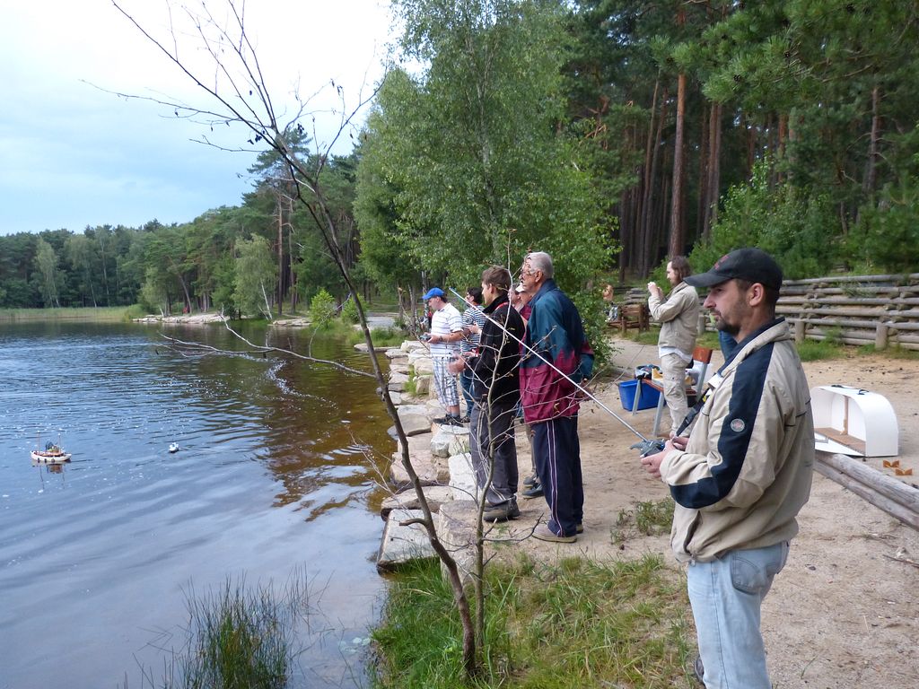 Bleskově jsem vypil čaj, Bohouš pivo a šli jsme se ven přivítat se Stanislavem Jíšou. Jak se blížila osmá večerní, přijížděli další. Jen Tomáš Blahůtka stále nikde. Po čtvrthodinové debatě jsem, ač se tomu doposud divím, navrhl, že by bylo vhodné nanosit modely k vodě, když už jsme se tu v tak hojném počtu sešli.