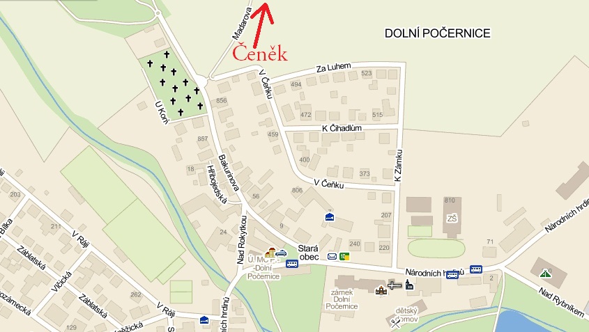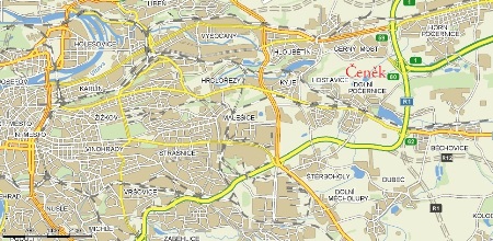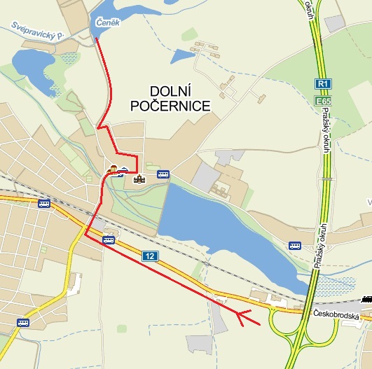 Z Pražského okruhu/Štěrboholské spojky sjedeme v místě sjezdu č. 62 na Český Brod (silnice I. třídy č. 12), ovšem vydáme se po Českobrodské směrem do centra Prahy! Po cca 1400 metrech na první světelné křižovatce odbočíme do ulice Národních hrdinů, podjedeme viadukt a jedeme asi 500 metrů s mírnou zatáčkou vpravo, dokud po pravé straně neuvidíme zámek. Hned za ním odbočíme vlevo do ulice K Zámku a po dalších 100 metrech odbočíme opět vlevo do ulice V Čeňku. Na konci zástavby musíme uhnout vlevo a po chvíli jízdy u zátarasů odbočíme ostře doprava a po zhruba 500 metrech jízdy mezi poli dorázíme k rybníku Čeněk (po pravé straně). V jeho okolí se nachází chatová kolonie.