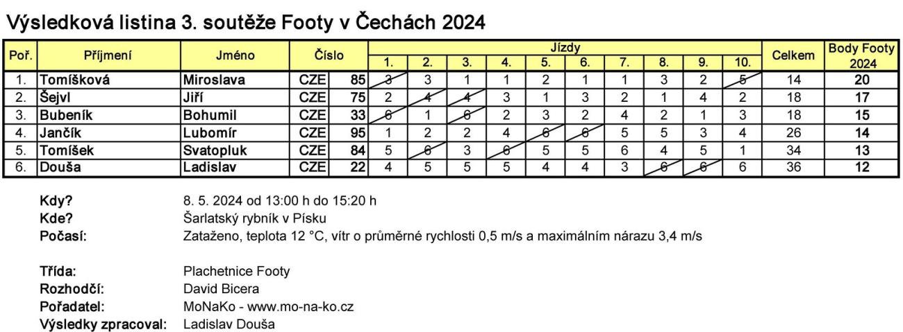 Soutěže plachetnic Footy v Čechách 2024